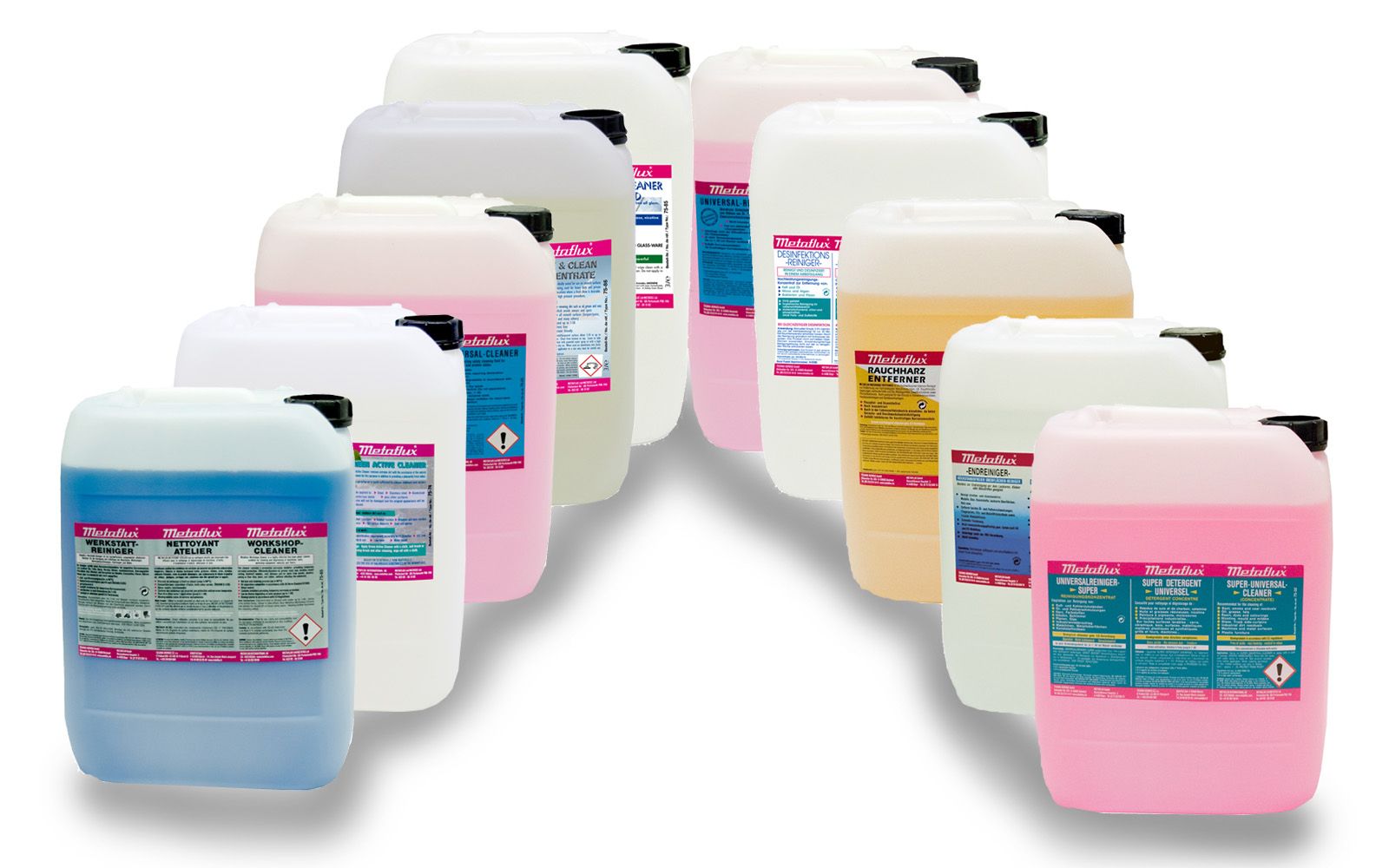 Ontdek hier het volledige gamma alkalische reinigers van Metaflux: